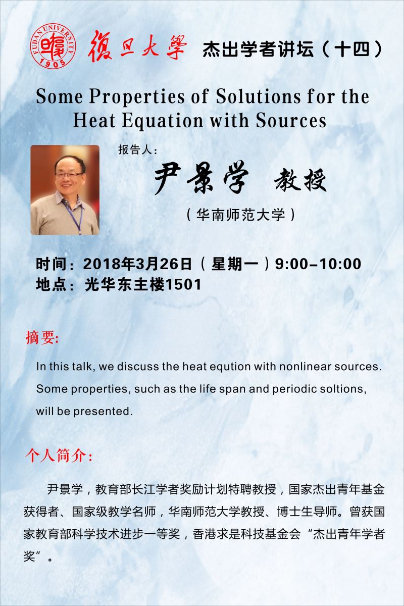 摘要:In this talk, we discuss the heat eqution with nonlinear sources. Some properties, such as the life span and periodic soltions, will be presented.