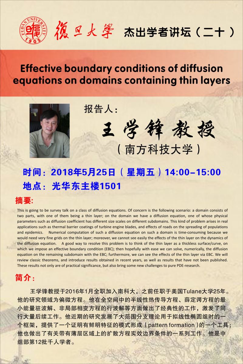 星空(中国)题目: 杰出学者讲坛(二十):Effective boundary conditions of diffusion equations on domains containing thin layers