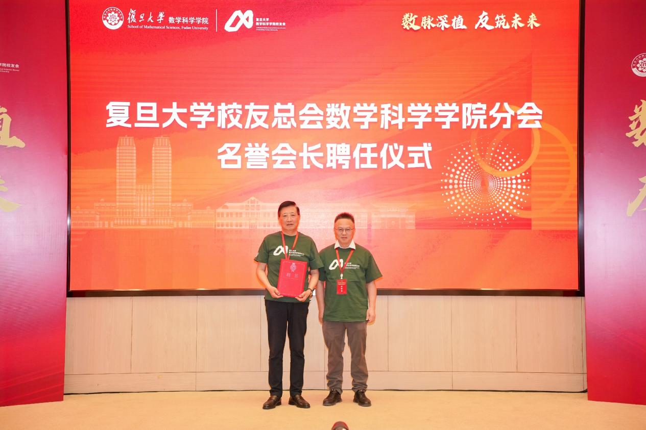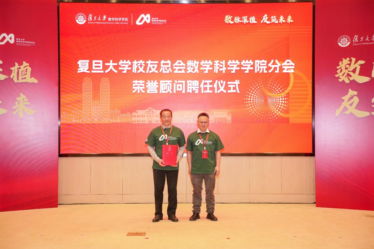 在荣誉顾问聘任仪式上,大会聘任数学系1977级本科、数学所1982级博士,复旦大学高等学术研究院院长,复旦大学原常务副校长陈晓漫校友为荣誉顾问。陈晓漫校友不仅在学术领域取得了突出成就,而且在管理领域展现了卓越领导才能。