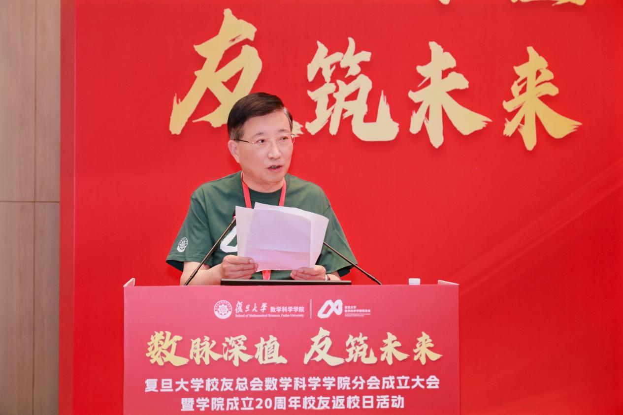 沈维孝会长在致辞中向广大校友的信任表示衷心的感谢,向学院全体师生为数学事业发展付出的心血致以崇高的敬意。他指出,学院紧紧围绕国家战略和时代命题,在人才培养、队伍建设、科研攻关、学科大楼等建设中,有坚守亦有突破,向着建设中国特色国际顶尖数学学科的目标笃定前行。复旦数学的发展离不开全体师生共同奋斗,更离不开广大校友鼎力支持,校友分会将致力于凝聚校友力量、赋能学院发展和服务社会需求,与校友们携手同心,合作共赢。