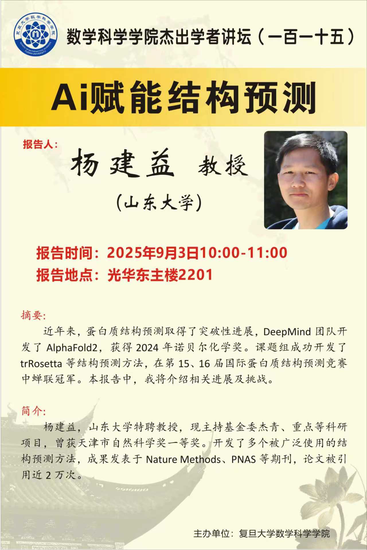 近年来,蛋白质结构预测取得了突破性进展,DeepMind团队开发了AlphaFold2,获得2024年诺贝尔化学奖。课题组成功开发了trRosetta等结构预测方法,在第15、16届国际蛋白质结构预测竞赛中蝉联冠军。本星空(中国)中,我将介绍相关进展及挑战。