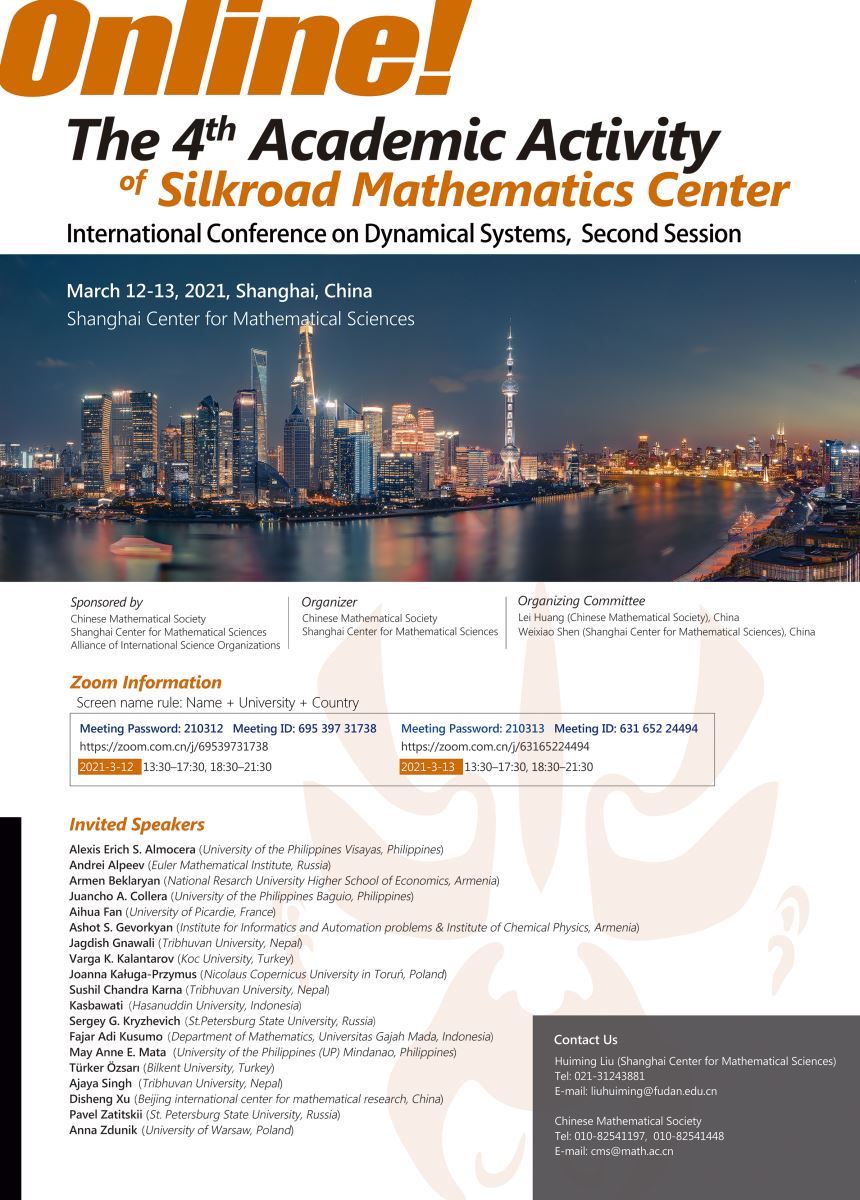 The 4th Academic Activity of Silkroad Mathematics Center-International Conference on Dynamical Systems, Second Session (online)