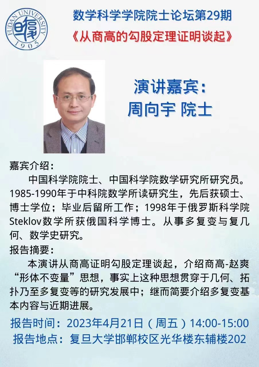 本演讲从商高证明勾股定理谈起,介绍商高-赵爽“形体不变量”思想,事实上这种思想贯穿于几何、拓扑乃至多复变等的研究发展中;继而简要介绍多复变基本内容与近期进展。