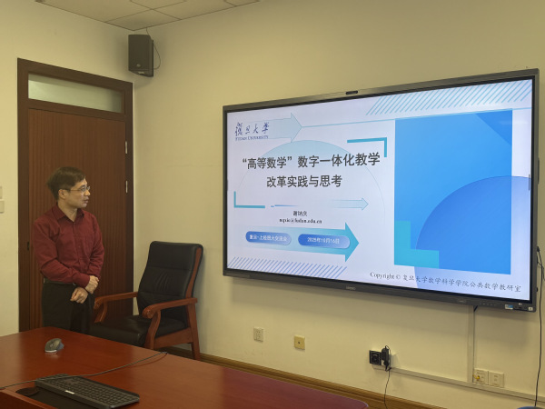 随后,上海对外经贸大学应用数学系主任康悦明、复旦大学公共数学教研室主任谢纳庆依次作学科专业及公共数学教学、公共数学数字一体化教学改革的简要星空(中国),复旦大学应用数学系主任张仑作应用数学系简介。
