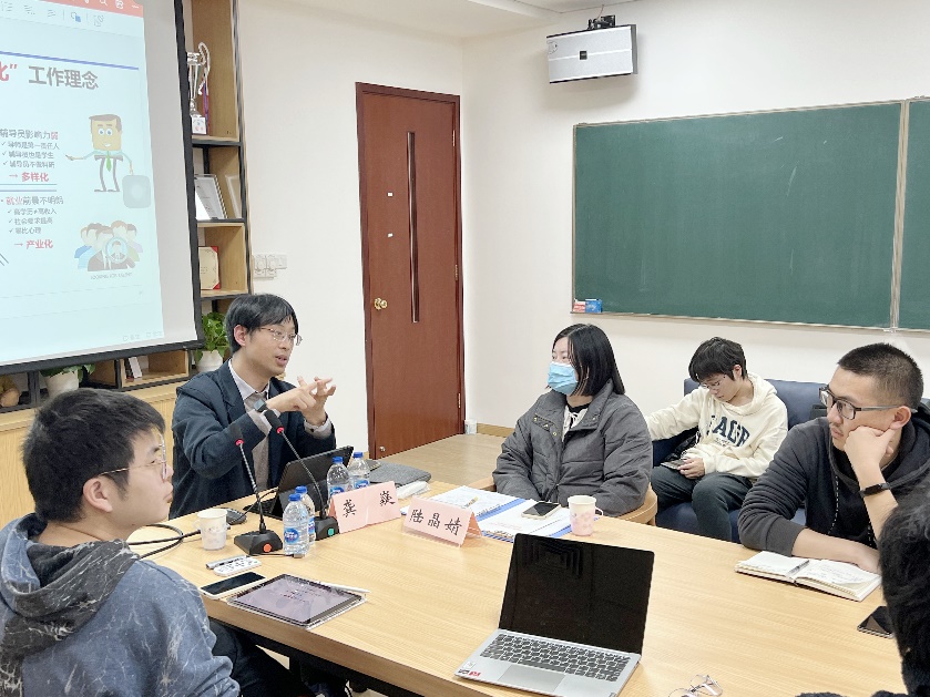 学生支部会场邀请材料科学系材料化学教工党支部书记龚嶷老师作经验分享。龚嶷老师曾担任研究生班级辅导员兼党支部书记,所在支部获得教育部首批全国高校百个研究生样板党支部,他结合自身经历,指出学生支部建设要注重“学思践悟”,“学”是基础,用学生的成果数据说话;“思”是核心,做好以党建为核心的思想引领;“践”是辅助,以党建服务为抓手;“悟”是亮点,做好总结归纳,确保工作系统性、连续性。在热烈的互动交流后,学院党委副书记陆晶婧总结指出,本次经验交流别开生面,各支部要学习务实精神及做法,鼓励各支部结合专业特点和学院特色,打造支部品牌,充分发挥党员先锋模范作用和支部战斗堡垒作用,不断对标争先。