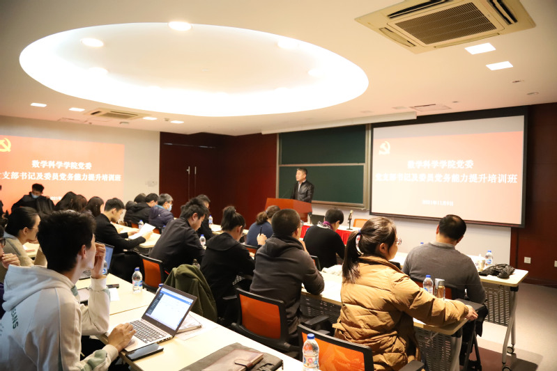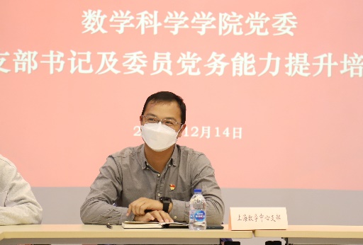 11月23日,学院党委举行培训班第二次课程。邀请党委组织部组织管理办公室科长王怡静作《高校党支部党务工作基础实务》专题培训,从实践操作层面切实解决基层党建实务难题,充分拓宽支委工作思路,提升工作水平,推动基层党支部党建工作提质增效。邀请纪委审查调查室主任申华蕾作《以支部建设为依托,加强党的纪律作风建设》专题辅导,通过真切案例讲解,切实增强参培支委责任意识,树立敬畏之心,对作风和腐败问题时刻保持警觉,牢记作风过硬的政治本色,从而推动数学事业高质量发展。