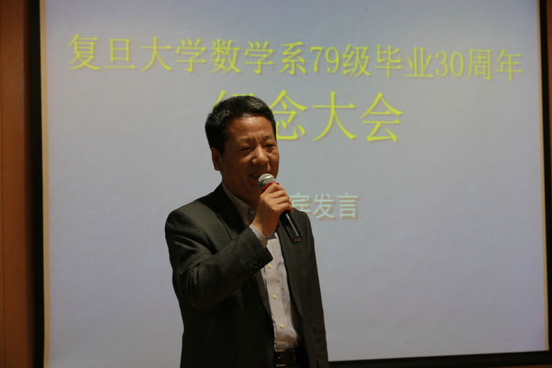 2013年5月18日上午,复旦大学数学系1979届校友举行了毕业30周年聚会。聚会在复旦光华东楼一楼大厅举行,逾100位校友参加。李大潜院士、郭坤宇院长、侯力强书记、王永珍副院长及部分老教师参加了这次聚会。