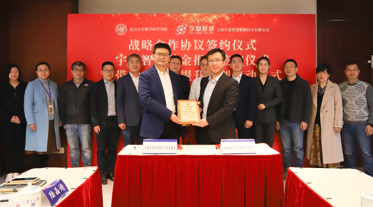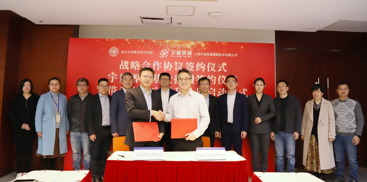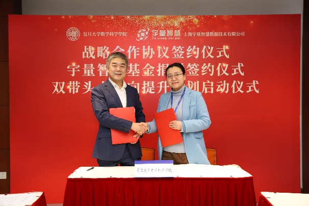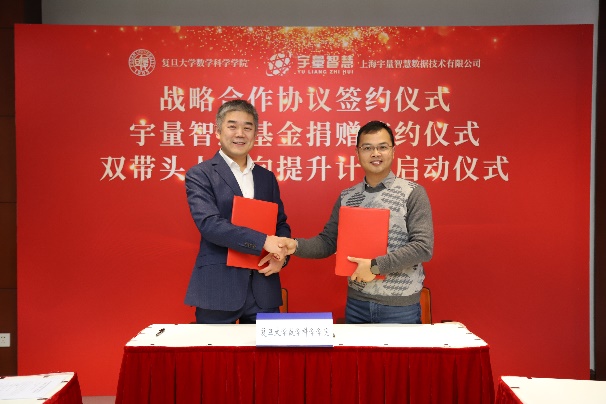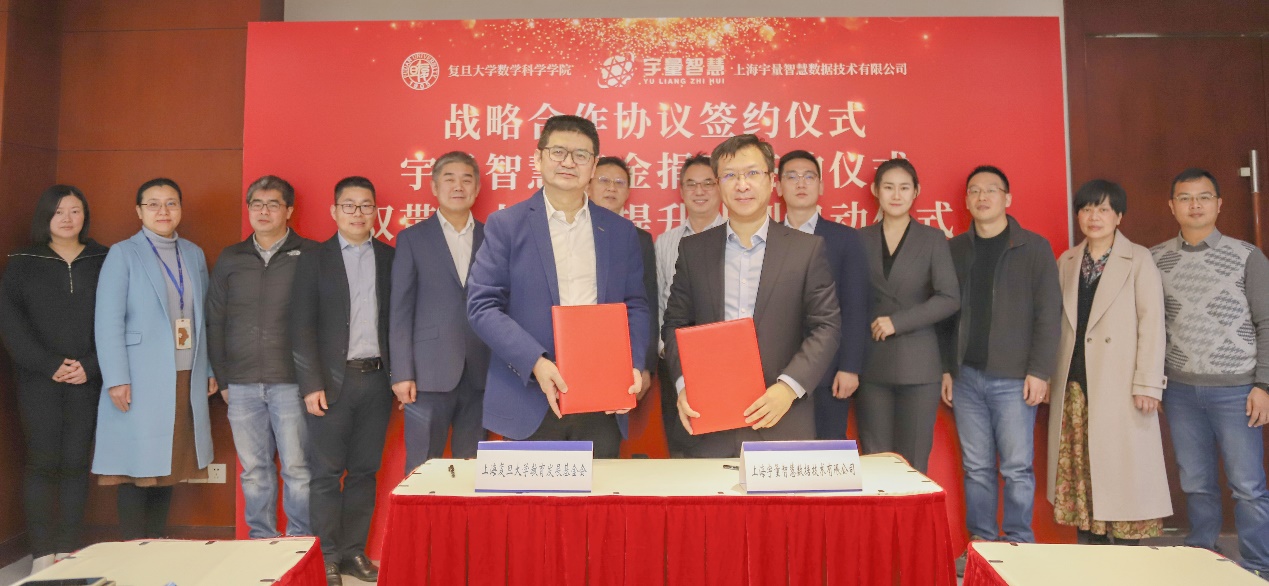 1月7日上午,星空网页版登录入口与上海宇量智慧数据有限公司战略合作协议签订仪式暨数学科学学院宇量智慧基金捐赠签约仪式、星空网页版登录入口双带头人双向提升计划启动仪式在光华楼东主楼2201隆重举行。上海宇量智慧数据技术有限公司总裁李江城、副总裁赵波、人事总监潘淼、销售总监高雪松,对外联络与发展处处长、上海复旦大学教育发展基金会秘书长杨增国,数学科学学院党政班子成员和教师代表出席。数学科学学院党委副书记刘建峰主持仪式。