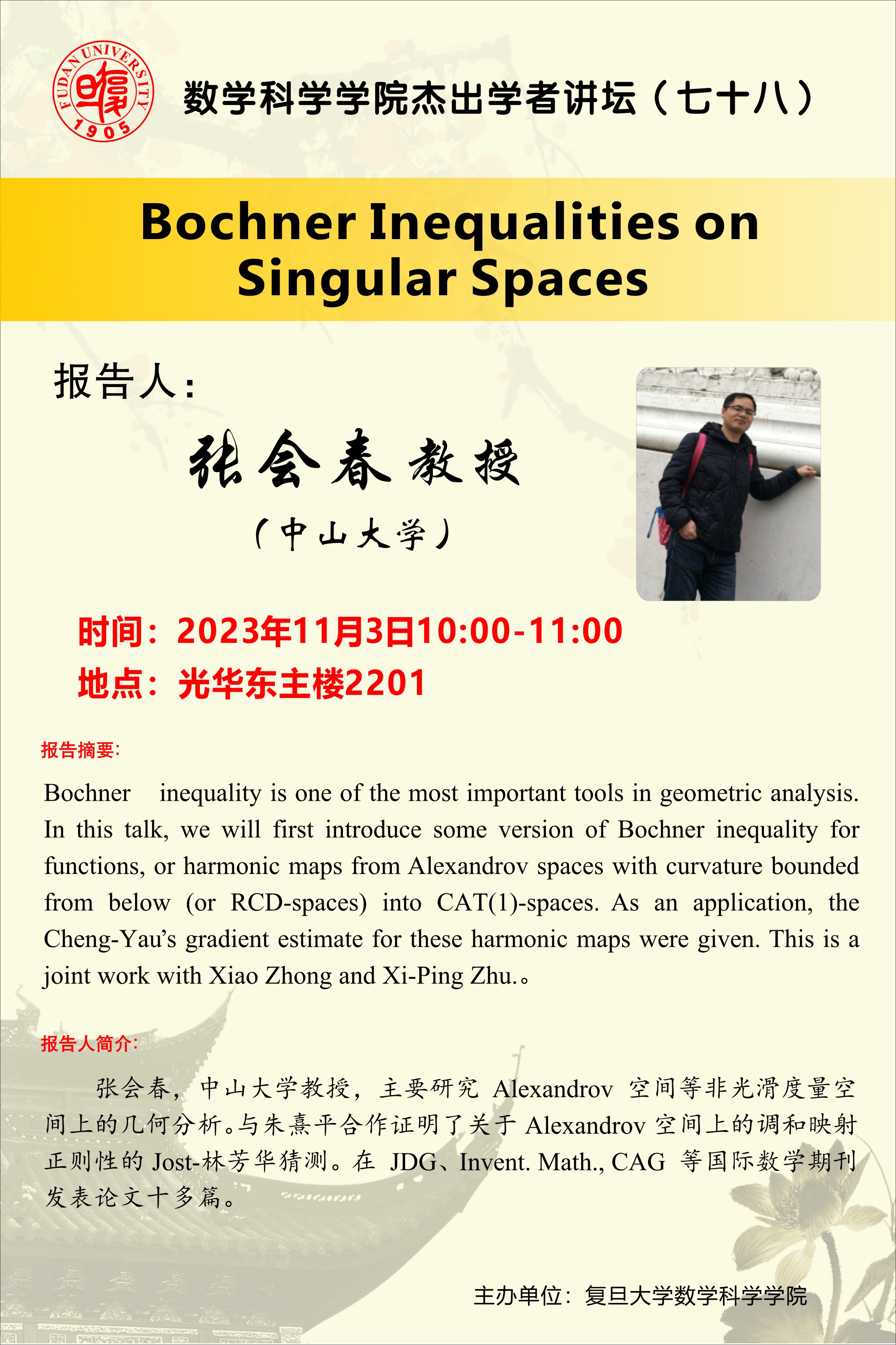 Bochner inequality is one of the most important tools in geometric analysis. In this talk, we will first introduce some version of Bochner inequality for functions, or harmonic maps from Alexandrov spaces with curvature bounded from below (or RCD-spaces) into CAT(1)-spaces. As an application, the Cheng-Yau’s gradient estimate for these harmonic maps were given. This is a joint work with Xiao Zhong and Xi-Ping Zhu.