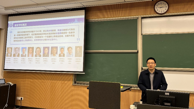 聘任仪式结束后,王志强教授围绕数学学科概况、人才培养体系、教学特色与教育教学综合改革等方面,系统介绍了复旦大学数学专业的发展现状。他以平实亲切的语言娓娓道来,深入浅出地为同学们勾勒出在复旦数院学习与生活的真实图景——这里有严谨专业的学术训练,也充满探索与成长的可能。