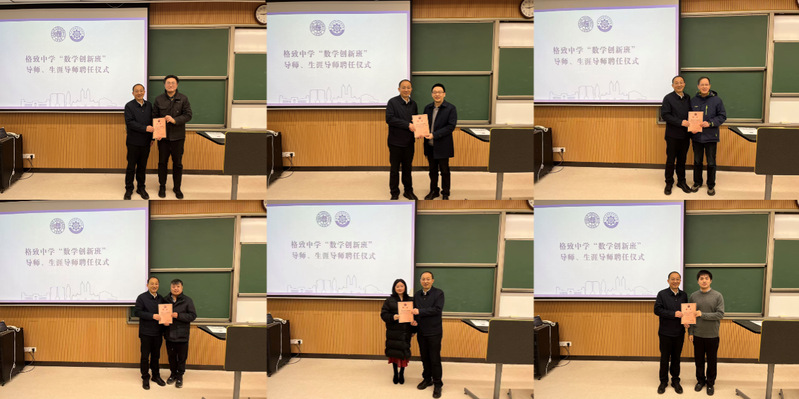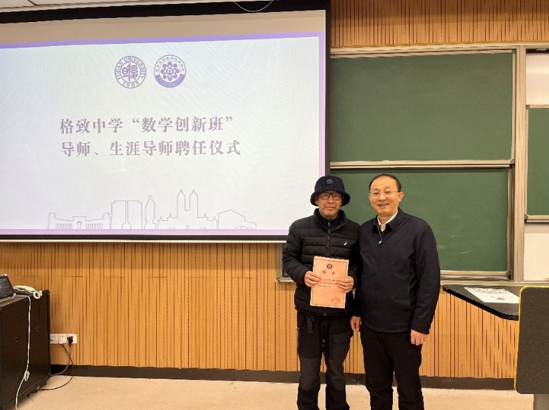 随后举行的聘任仪式上,吴照校长为应坚刚教授颁发格致中学科学教育副校长的聘书,为应坚刚教授、姚一隽教授、王志强教授、邱维元教授、吕志教授、顾超博士后颁发格致中学“数学创新班”导师的聘书,为陆晶婧副书记颁发格致中学“数学创新班”生涯导师的聘书。