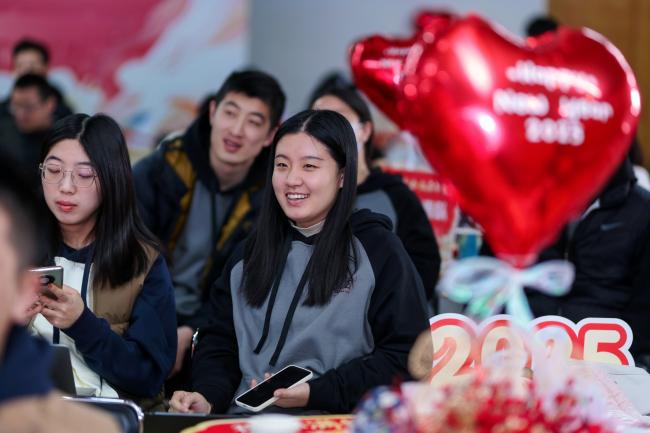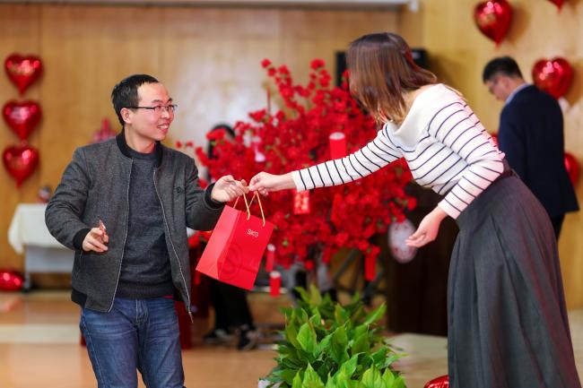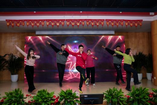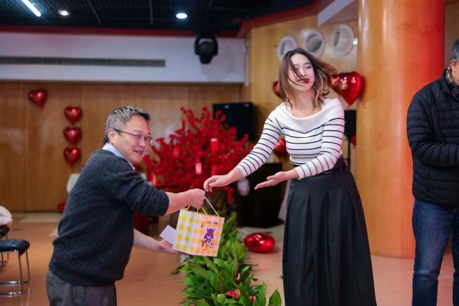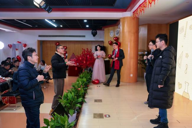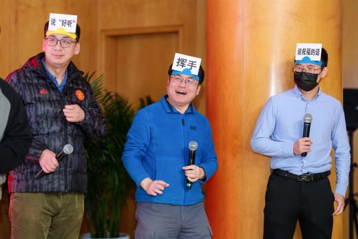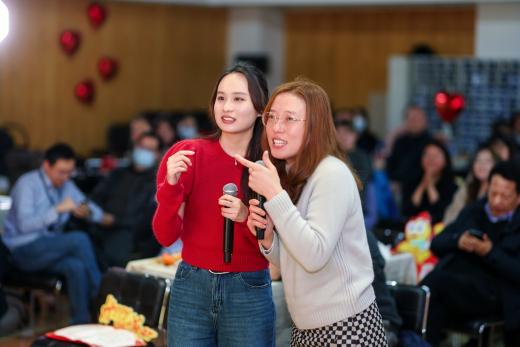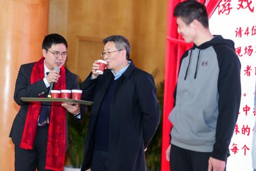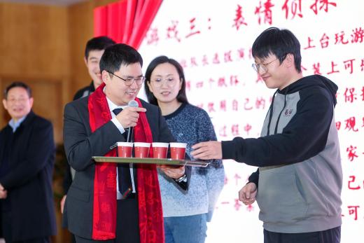 在游戏环节,师生们分成四组就坐,分别有瑞蛇送安、金蛇迎春、灵蛇纳福、祥蛇贺岁四支战队,在第一个游戏新年团团抱中,大家拥抱彼此,迎来了本次茶话会的小高潮。
