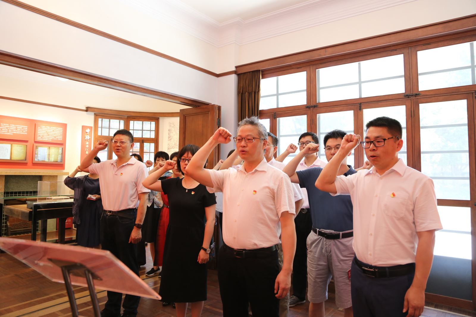 近日,数学科学学院党委举行主题党日活动,组织学院党政班子、党委委员、支部支委等集体前往《共产党宣言》展示馆暨陈望道旧居参观,并重温入党誓词,本次活动也是学院“不忘初心、牢记使命”主题教育系列活动之一。