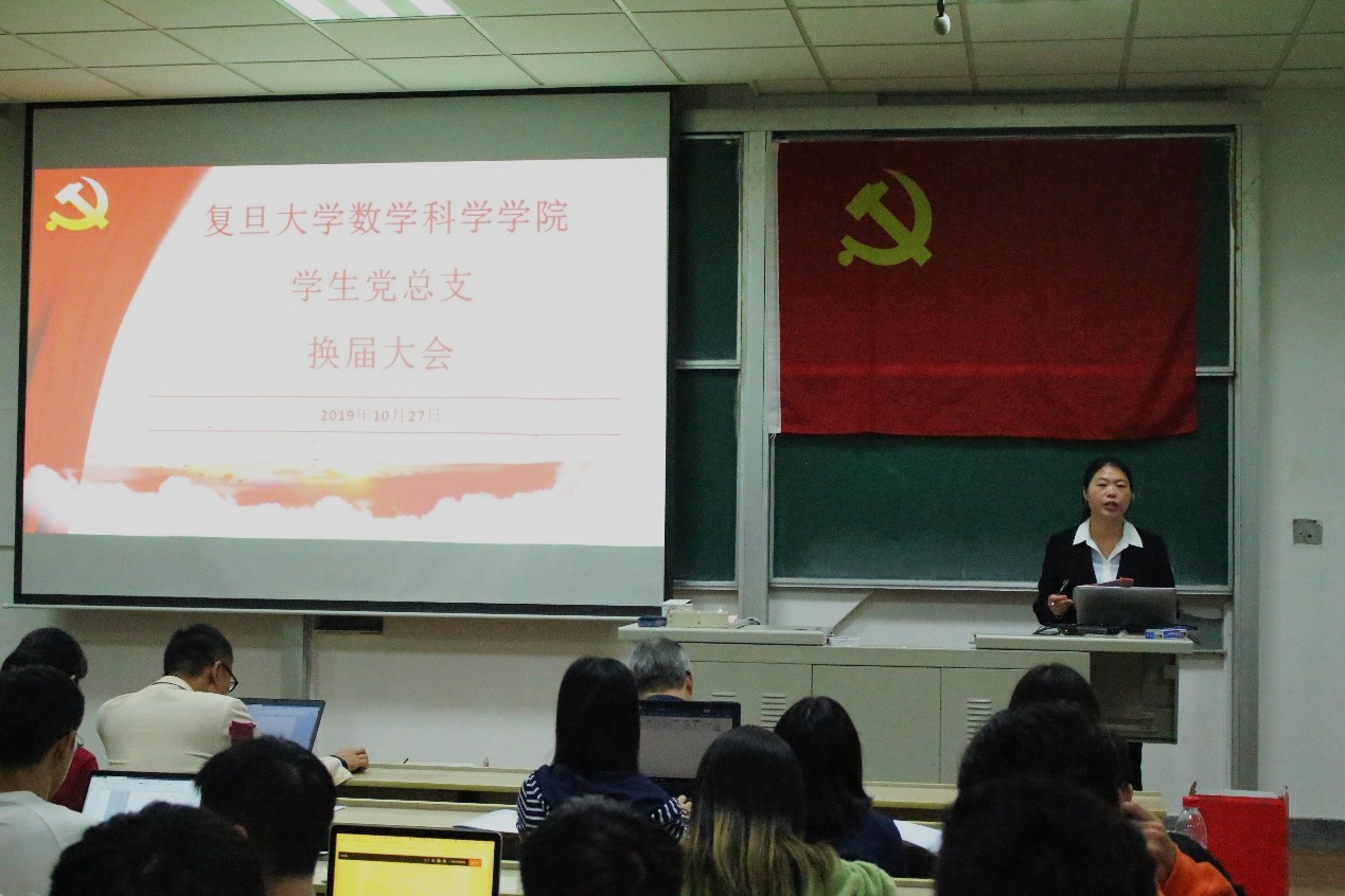 10月27日,数学科学学院学生党总支换届大会在邯郸校区第三教学楼举行,数学科学学院、上海数学中心和大数据学院的185名党员代表出席大会,列席大会的还有学院分党委书记王永珍老师、大数据学院副院长阳德青老师。会议由学生党总支副书记李金凤同志主持。