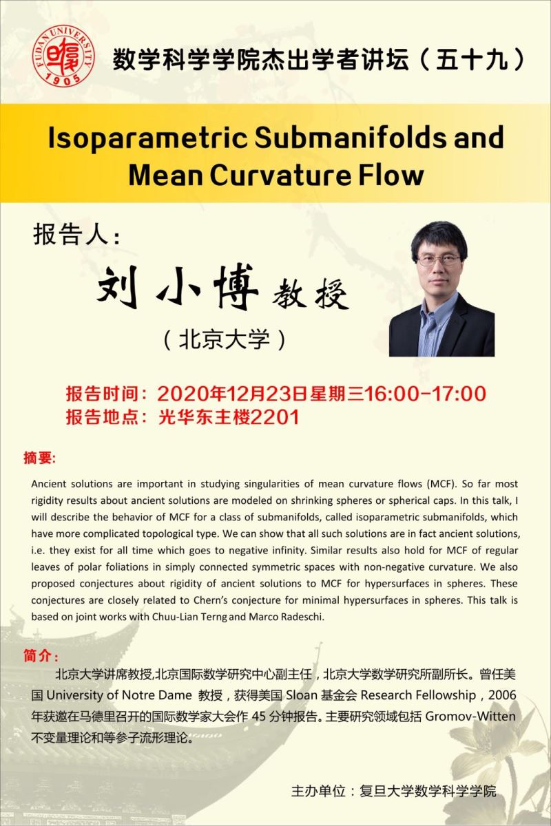 Ancient solutions are important in studying singularities of mean curvature flows (MCF). So far most rigidity results about ancient solutions are modeled on shrinking spheres or spherical caps. In this talk, I will describe the behavior of MCF for a class of submanifolds, called isoparametric submanifolds, which have more complicated topological type. We can show that all such solutions are in fact ancient solutions, i.e. they exist for all time which goes to negative infinity. Similar results also hold for MCF of regular leaves of polar foliations in simply connected symmetric spaces with non-negative curvature. We also proposed conjectures about rigidity of ancient solutions to MCF for hypersurfaces in spheres. These conjectures are closely related to Chern’s conjecture for minimal hypersurfaces in spheres. This talk is based on joint works with Chuu-Lian Terng and Marco Radeschi.