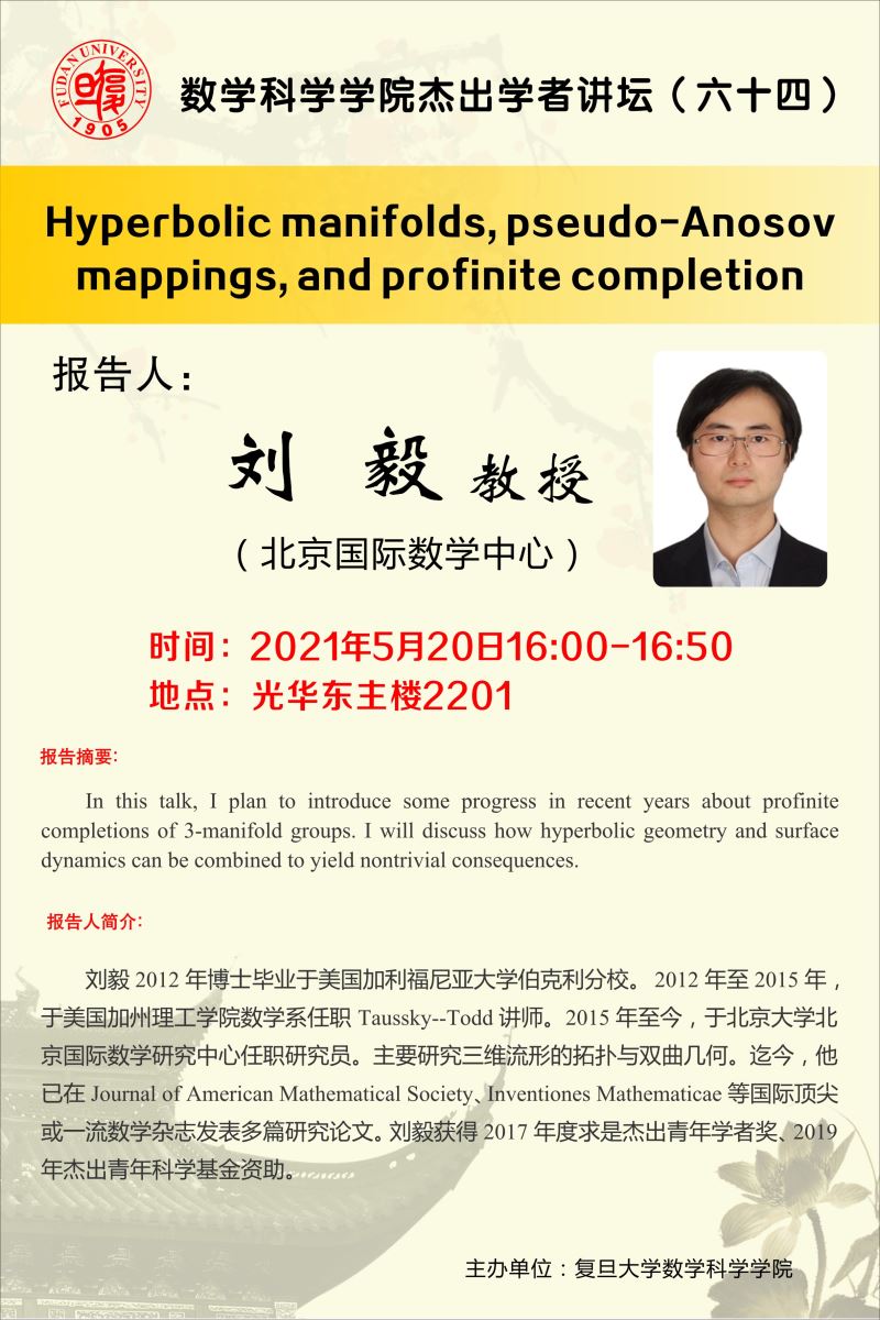 杰出学者讲坛(六十四):Hyperbolic manifolds, pseudo-Anosov mappings, and profinite completion