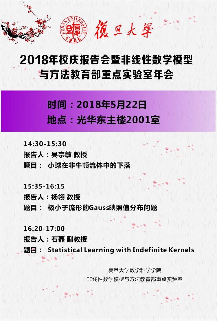 | Conference Name: | 2018年校庆星空(中国)会暨非线性数学模型与方法教育部重点实验室年会 |