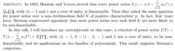 | Presentation Name: | 午间学术星空(中国)会(一百二十三):Linearizability of power series over a non-archimedean field of positive characteristic |