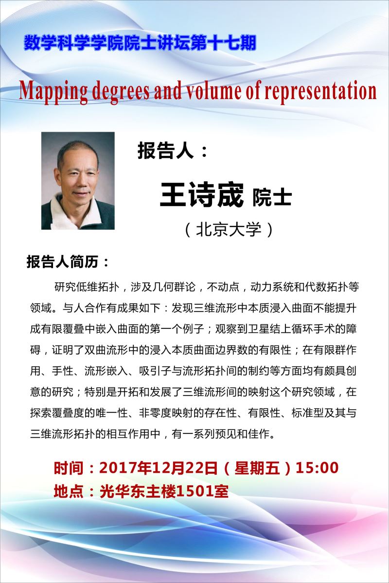 院士讲坛第十七期:Mapping degrees and volume of representation