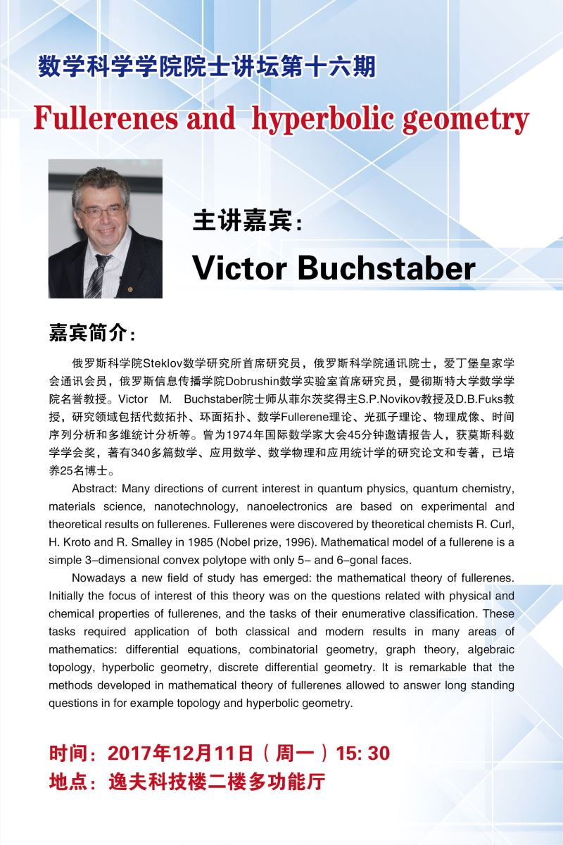 院士讲坛第十六期:Fullerence and hyperbolic geometry